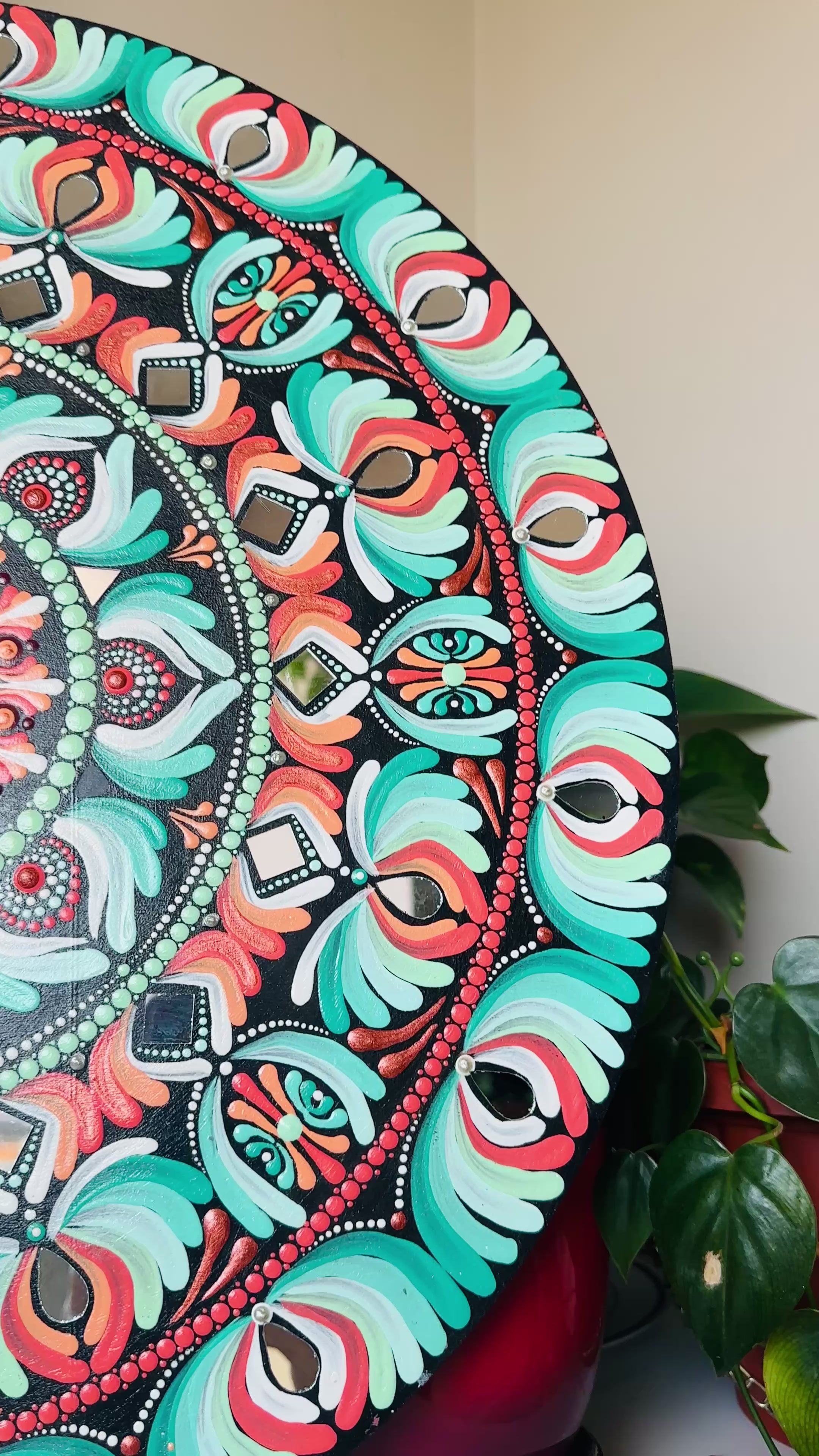 The mirror accents add a touch of sparkle, reflecting light beautifully and enhancing its intricate detailing. Ideal as a statement wall dรฉcor, this artwork brings positivity, elegance, and a modern-boho charm to any space.